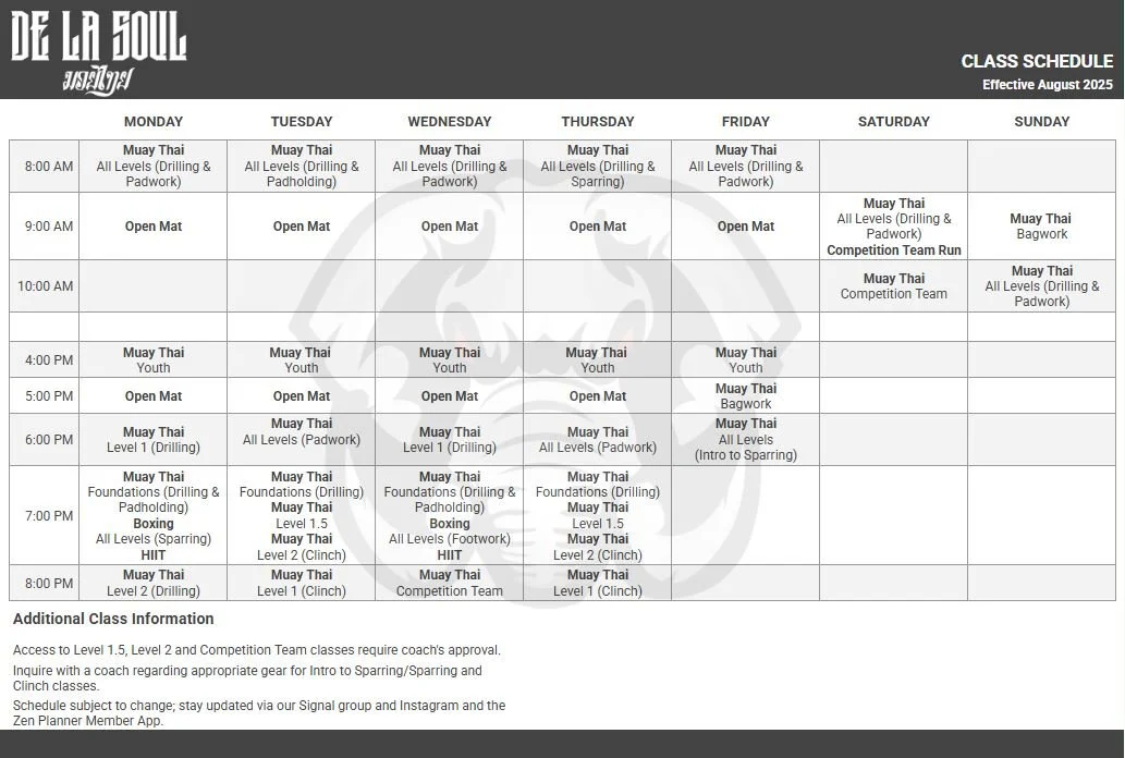 PLEASE NOTE: Daily classes subject to change around holidays and team events.